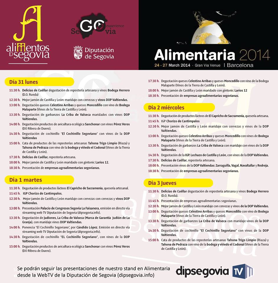 Se podrán seguir las presentaciones de nuestro stand en Alimentaria desde la WebTV de la Diputación de Segovia www.dipsegovia.info